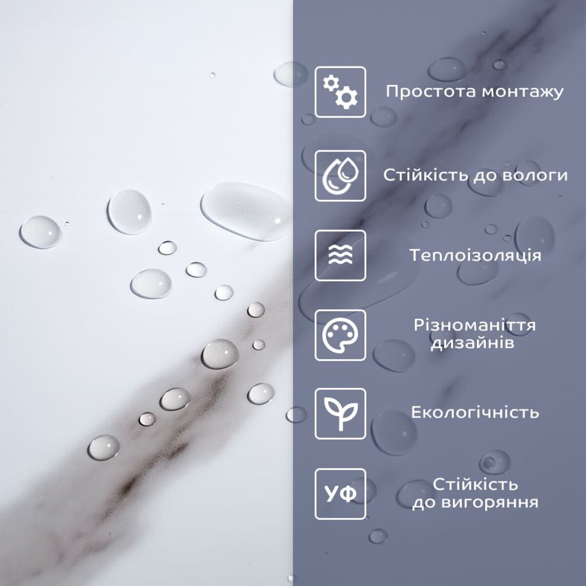 - Захисний силіконізований папір: оберігає клейовий шар від пересихання та забруднення, легко знімається під час монтажу.