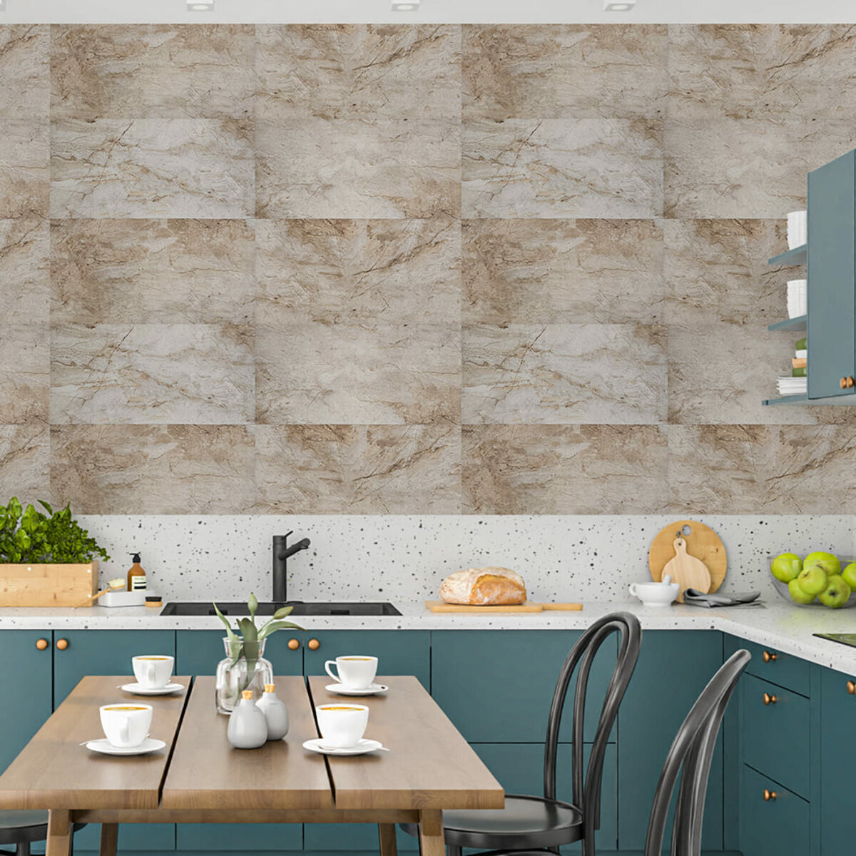 Плитка має різні дизайни, включаючи кольори, візерунки та текстури, що імітують натуральні матеріали та робить її придатною під різні інтер'єрні рішення.