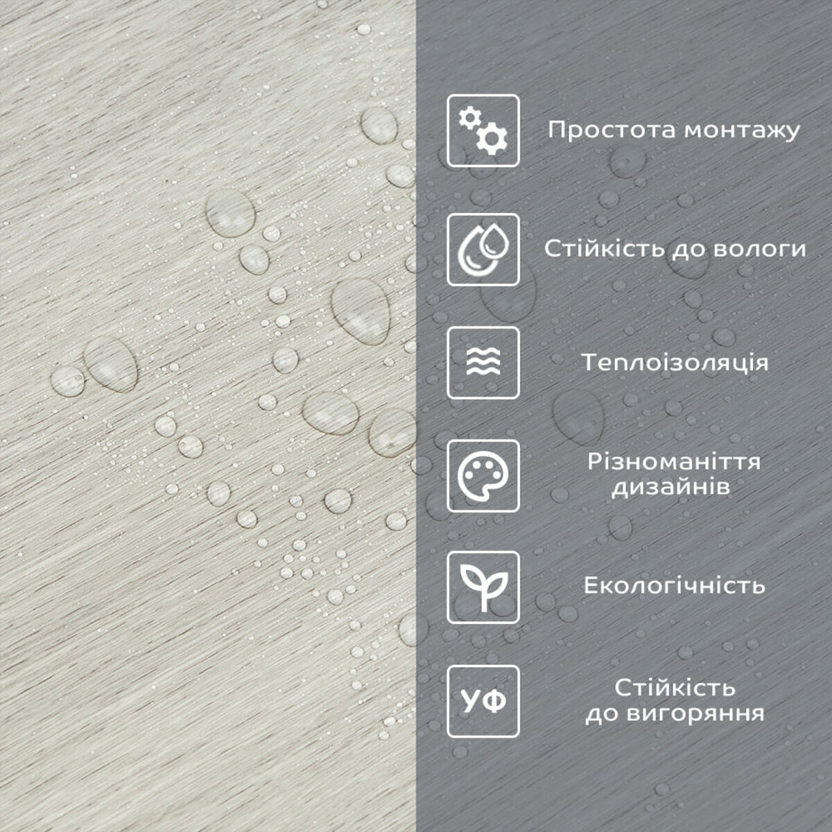 Фактура: рівна, з імітацією натуральних матеріалів. Поверхня матова.