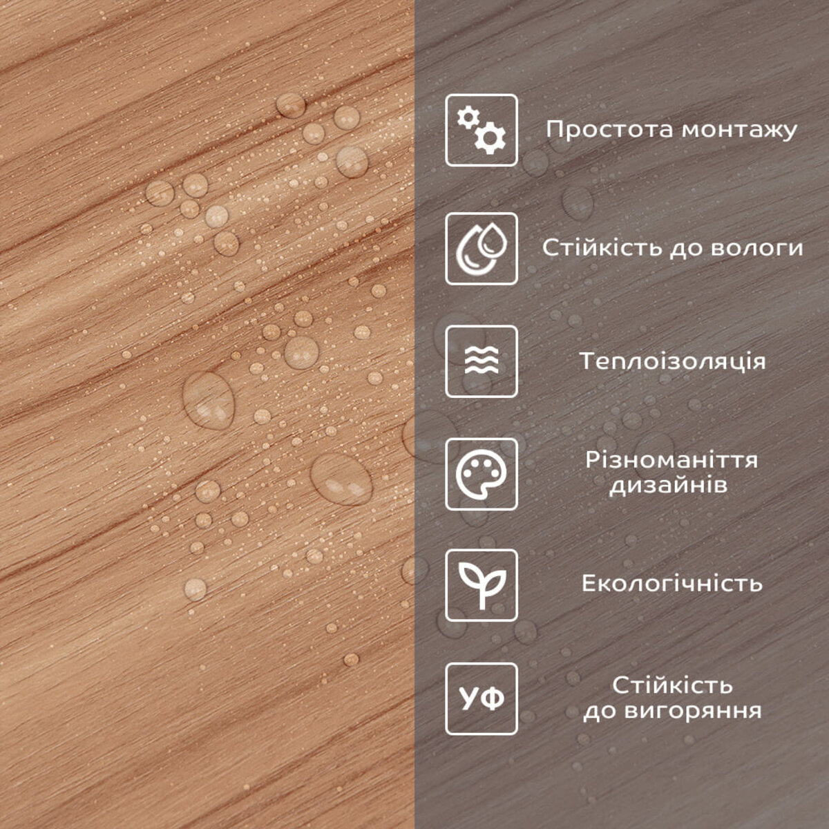 Фактура: рівна, з імітацією натуральних матеріалів. Поверхня матова.
