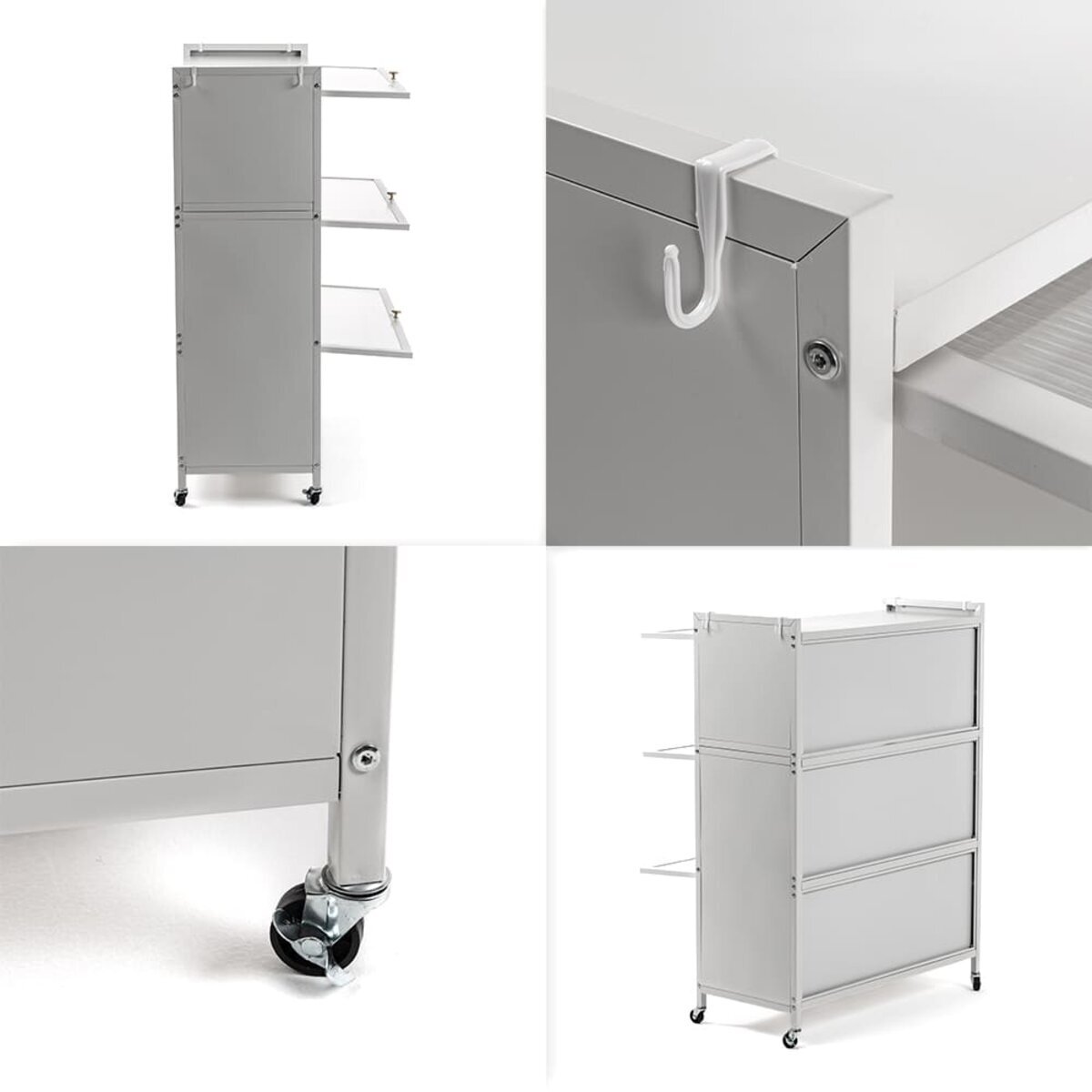 Відгуки - Шафа мобільна для зберігання розкладна триярусна з сталі 70х36х112,8см Світло-сірий SW-00002116