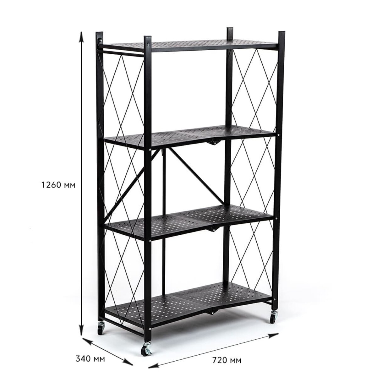 Опис - Стелаж мобільний чотириярусний універсальний розкладний з нержавіючої сталі 126х72х34см Чорний SW-00002098