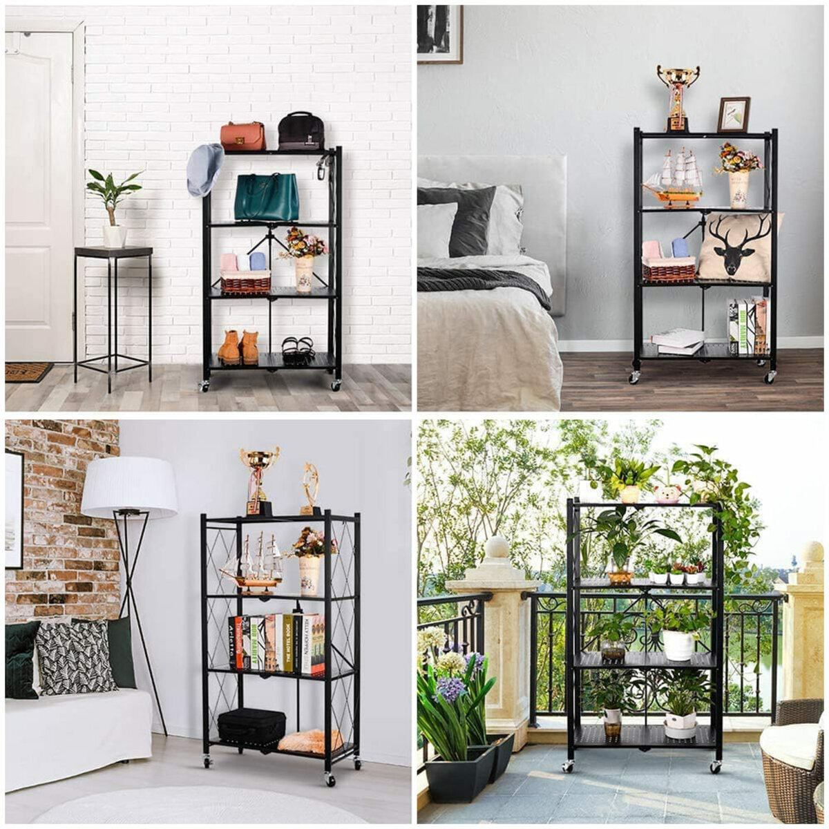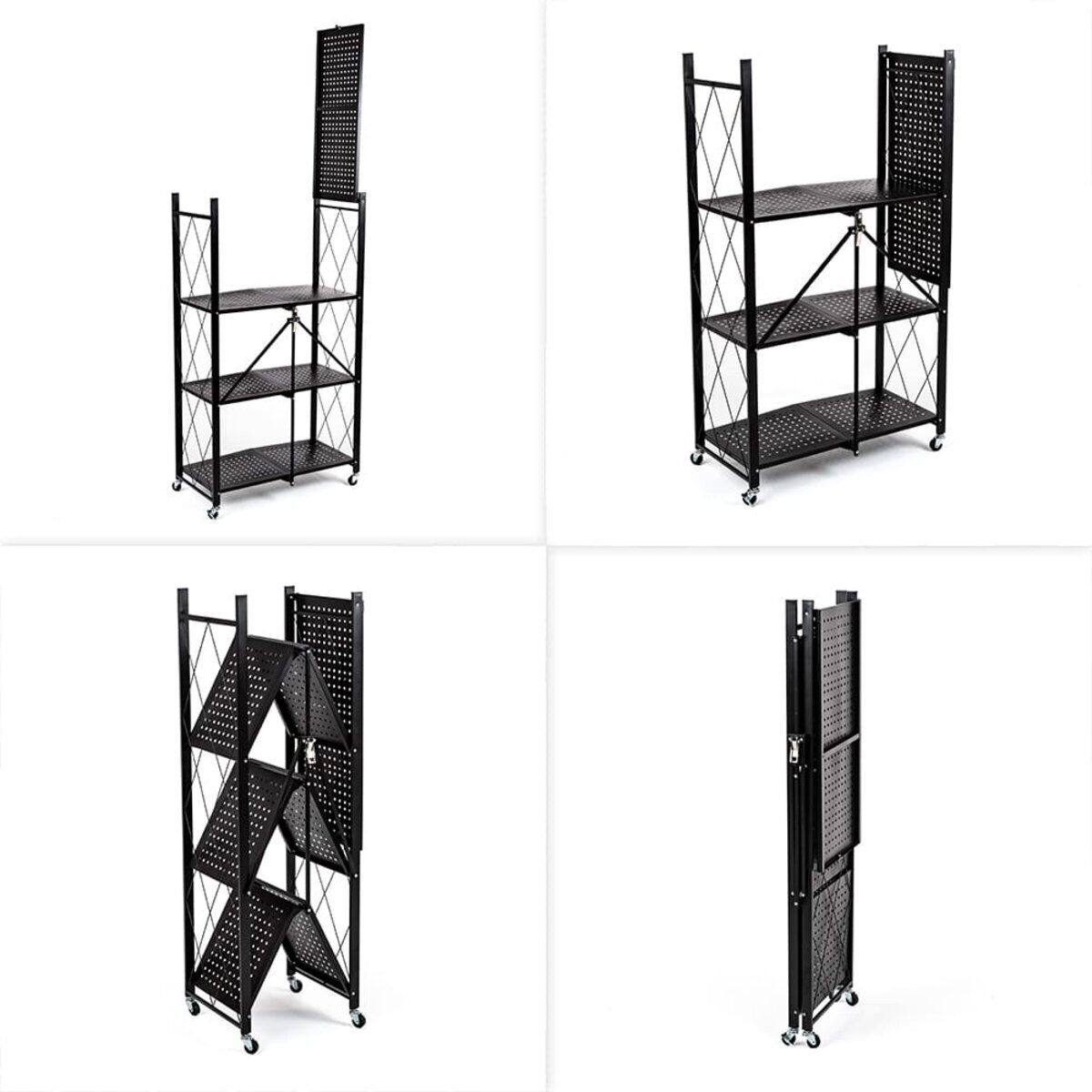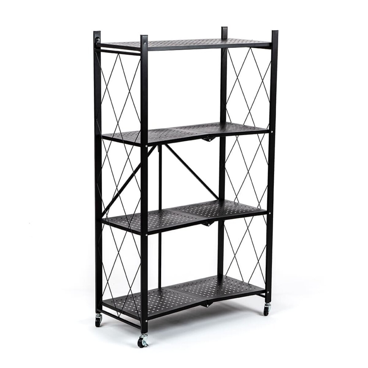 Відгуки - Стелаж мобільний чотириярусний універсальний розкладний з нержавіючої сталі 126х72х34см Чорний SW-00002098