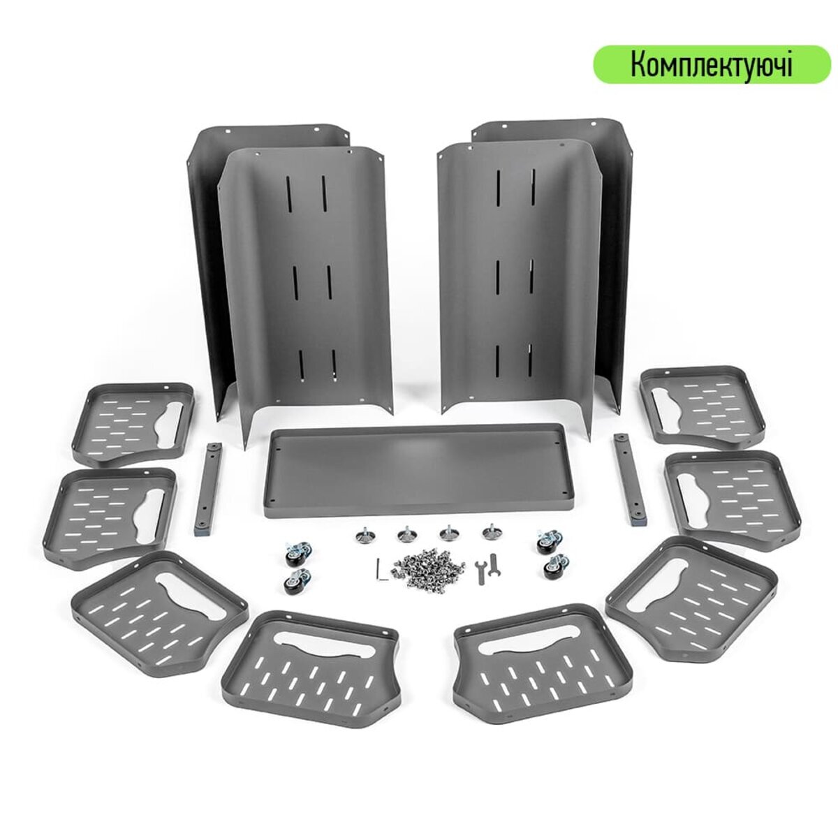 - Мобільність і стаціонарність: у комплекті передбачені колеса із фіксаторами та регульовані ніжки.