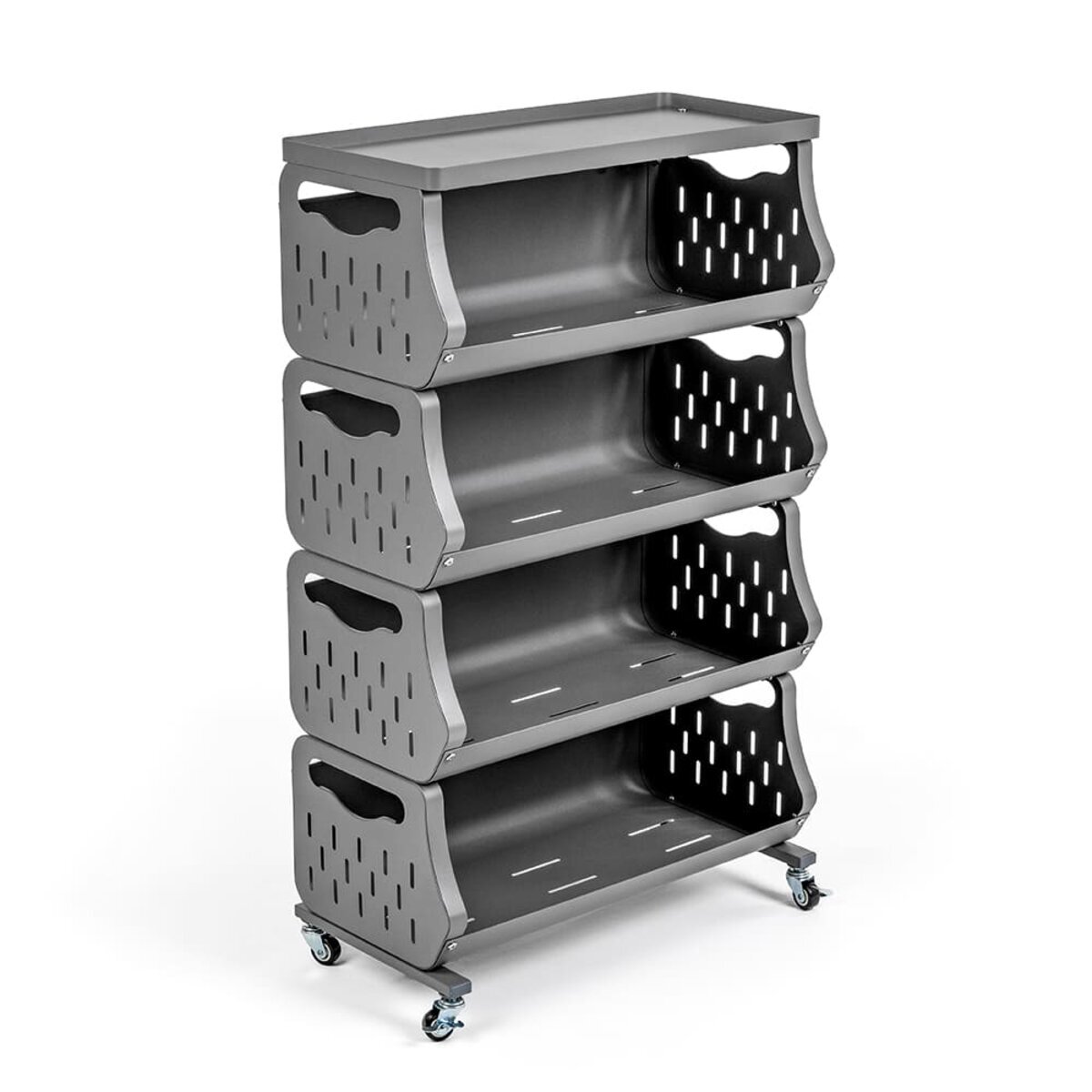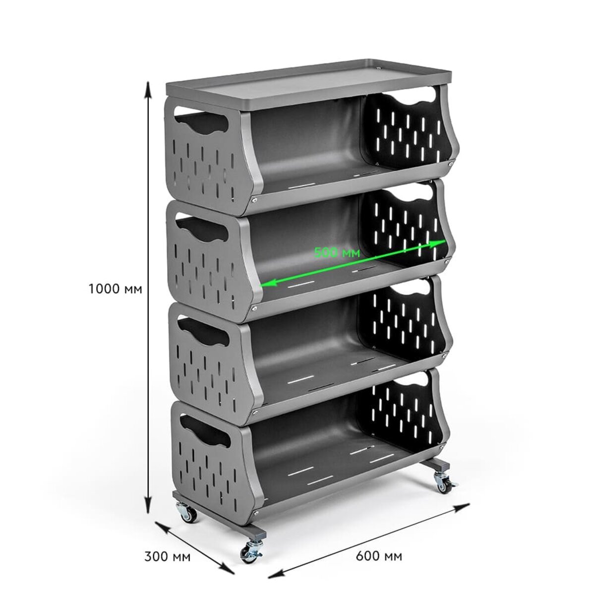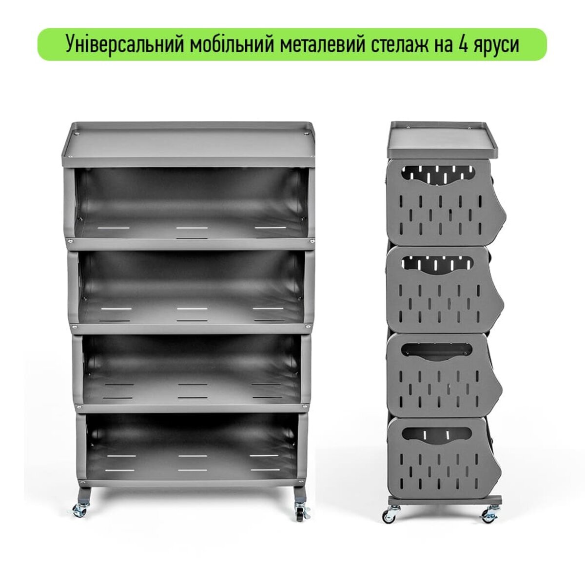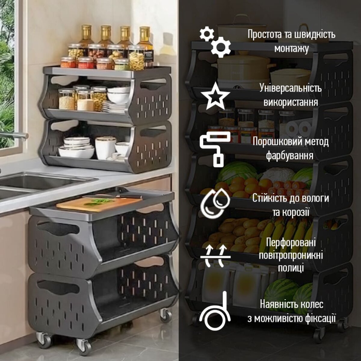 До вашої уваги стильне та функціональне рішення для організації простору у будь-якому приміщенні – універсальний стелаж для зберігання. Завдяки мобільній конструкції з колесами (які йдуть у комплекті), його легко переміщати туди, де він потрібен найбільше. Компактний дизайн із зручними полицями забезпечує ефективне зберігання речей з легким доступом до них. Перфоровані стінки полиць сприяють природній вентиляції, що ідеально підходить для зберігання продуктів або текстилю. Стелаж гармонійно доповнює домашній, офісний чи гаражний простір, створюючи порядок і комфорт.