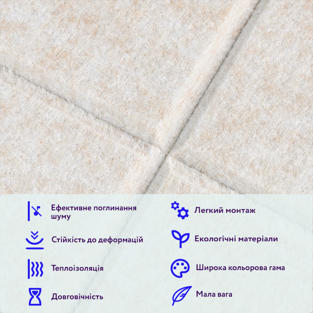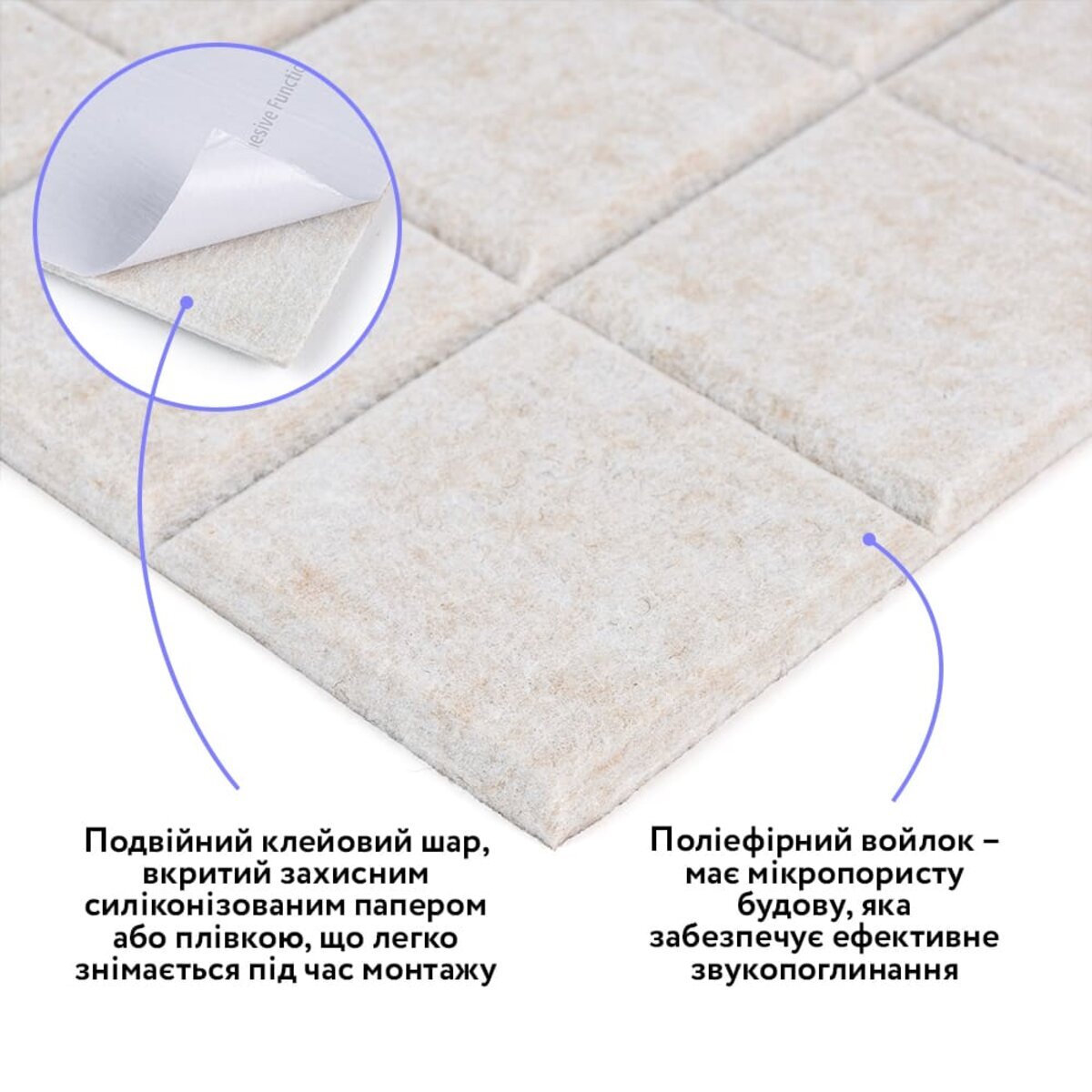 Опис - Звукоізоляційна панель 300х300х9мм Молочний меланж SW-00002701