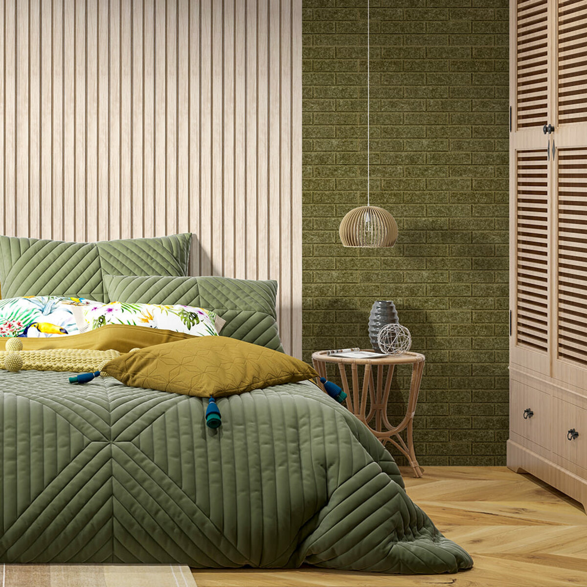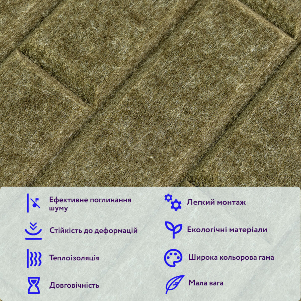 Поверхня: панель має виражену волокнисту текстуру з невеликими структурними нерівностями, матова та рельєфна, що залежно від моделі імітує рейку, цеглу або геометричні фігури.