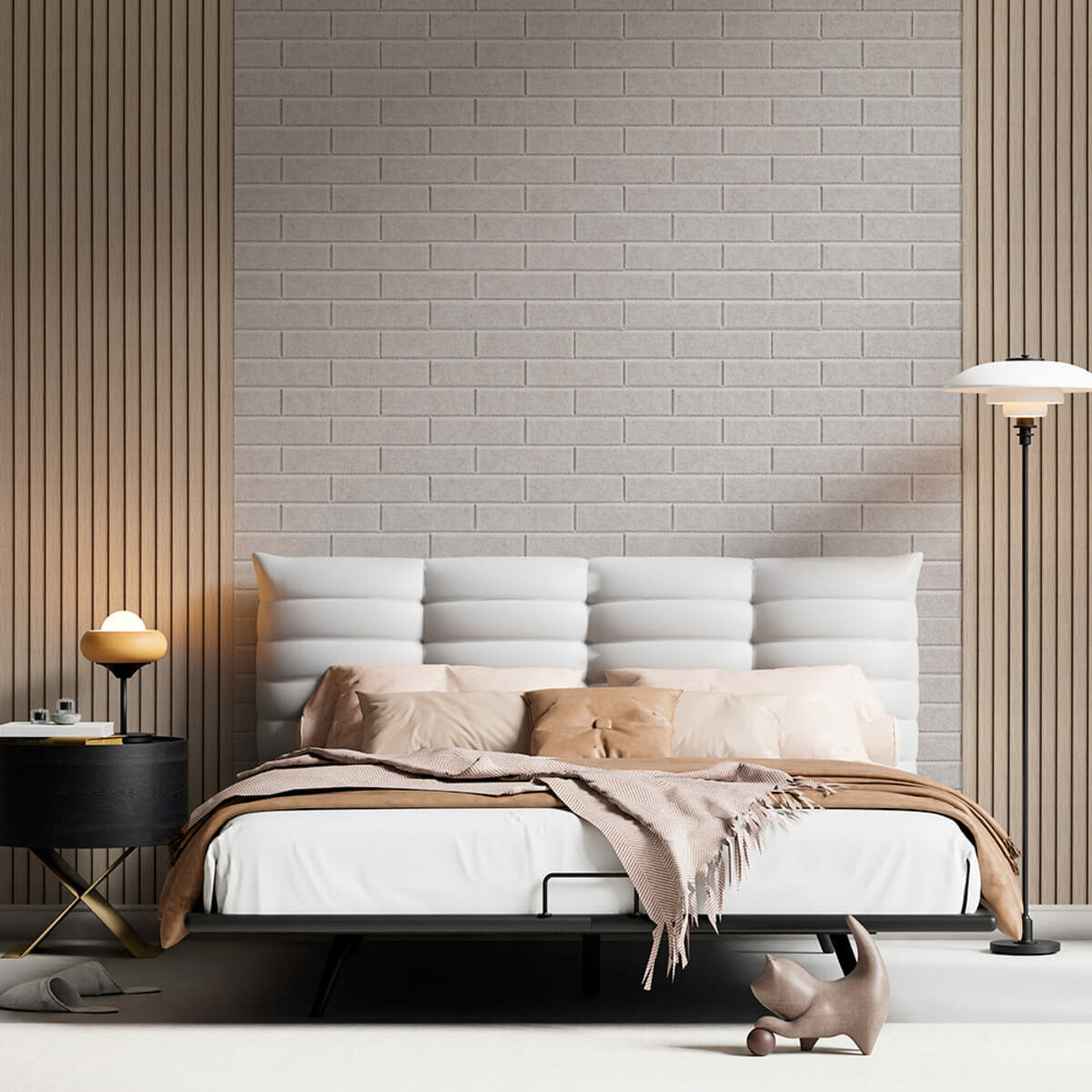 Поверхня: панель має виражену волокнисту текстуру з невеликими структурними нерівностями, матова та рельєфна, що залежно від моделі імітує рейку, цеглу або геометричні фігури.